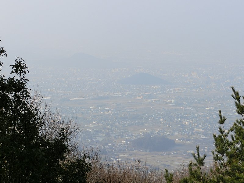 | 龍王山は奈良盆地の東側に位置し、頂上からは二上・葛城・金剛の山並み、畝傍山・耳成山と奈良盆地等展望は非常に良い。ただしこの日は春霞のため眺めはもう一つだった。 | ||