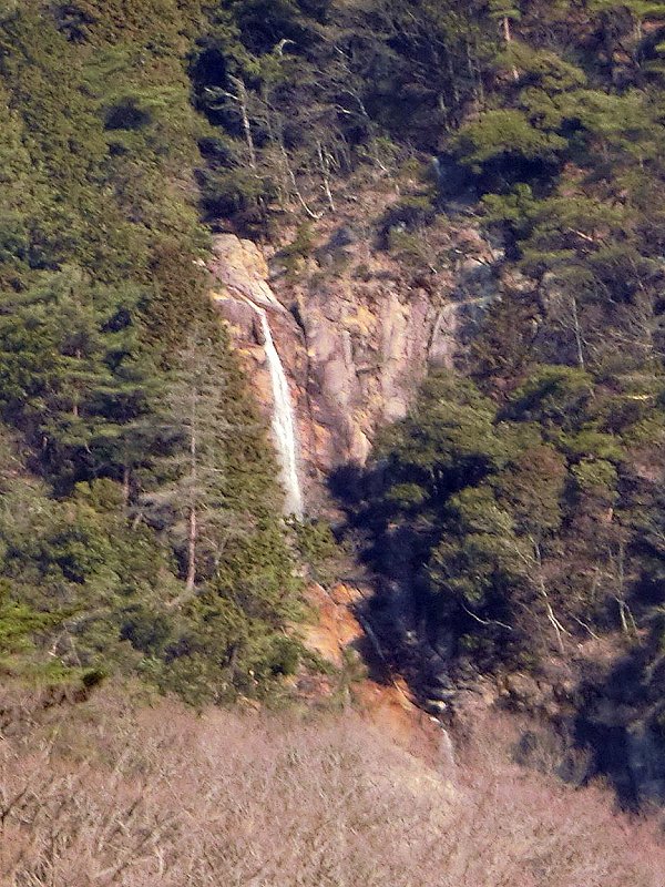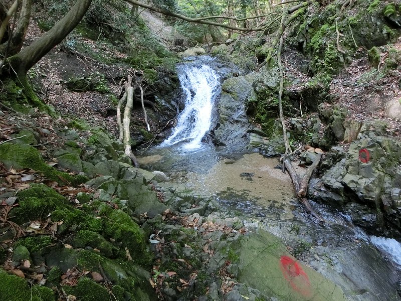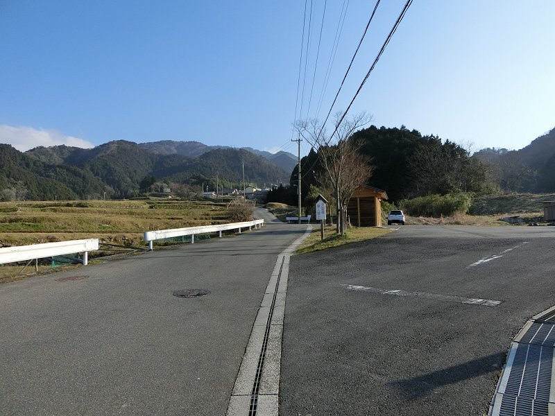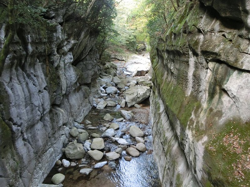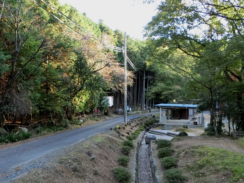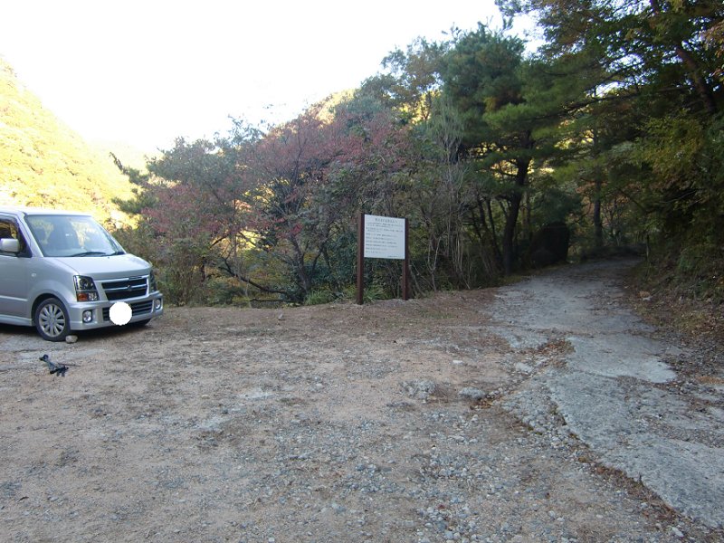 新名神の高架の手前を左折すれば良かったが、前回同様高架をくぐり直ぐ左折しょうとしたが、工事で進入不可、そそまま直進し突き当たりを左折し、集落内の細い道を抜け小岐須渓谷への道に入る。採石場を過ぎれば、道は更に狭くなり、そのうえカーブも多くスピードは出せない。鈴鹿ICからの距離は7kmを少し超える位か。トイレは途中に有るキャンプ場道路脇のトイレが利用可能。