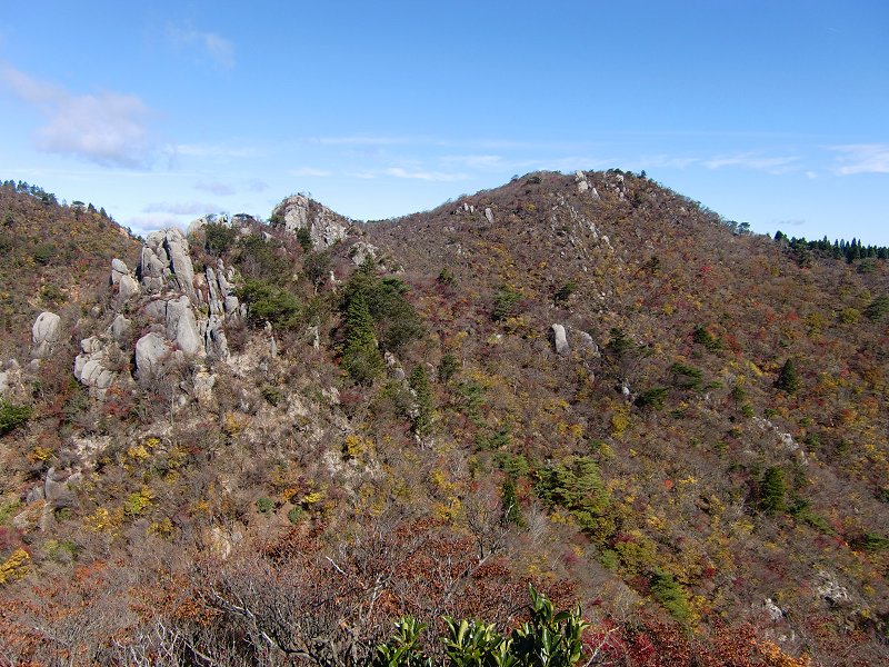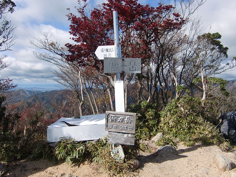 御所平のある尾根は、起伏の少ない緩やかな尾根で、木々は少なく終止視界が開け、展望はすこぶる良い。特1000mにも満たない山とは思えない、堂々とした仙ヶ岳の姿は素晴らしい眺めだ。