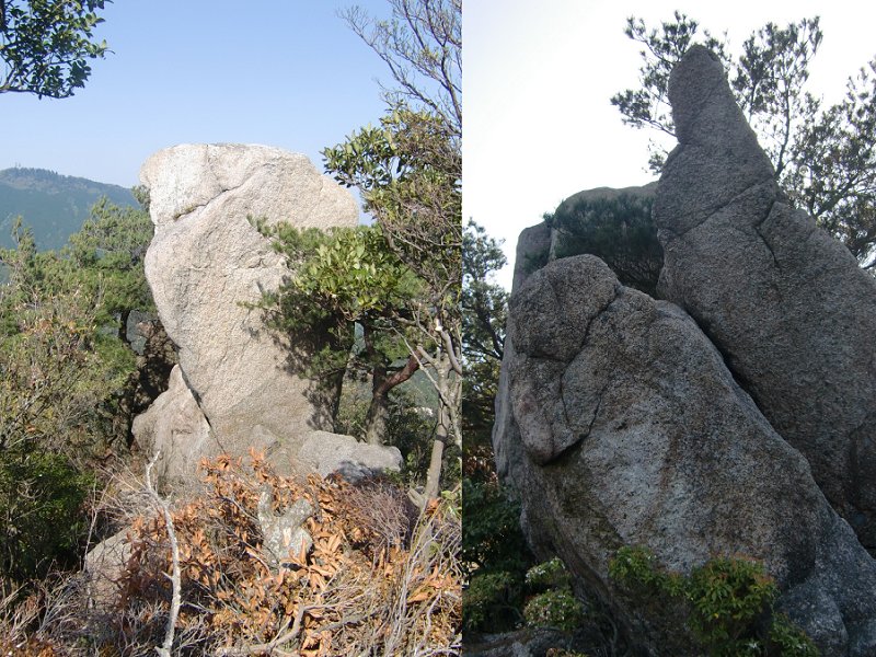 頂上北には展望に優れた岩が2ヶ所、手前が馬乗り岩?で、その先が展望岩?