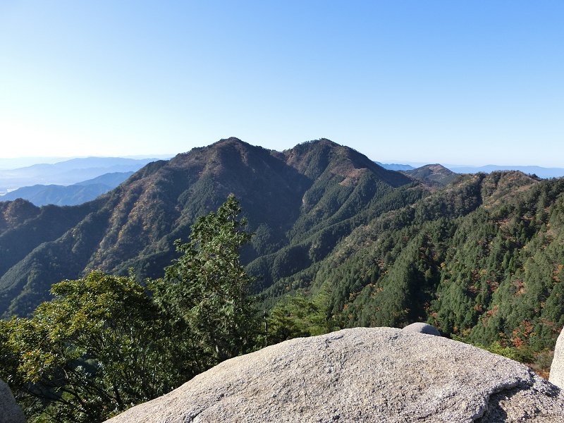 手前の馬乗り岩?からの眺め、中央奥は綿向山