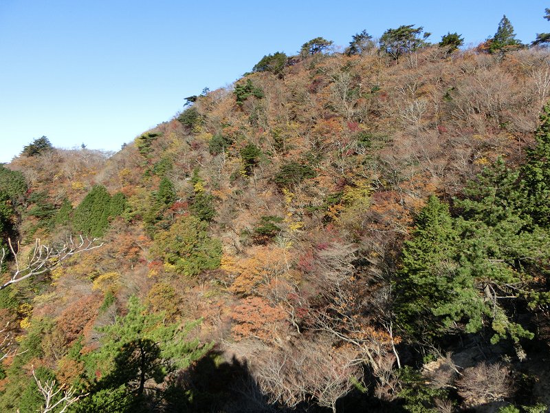 時期も紅葉にドンピシャで、少し風があり気温も低かったが、御嶽山や乗鞍岳も十分確認できるほどの晴天にも恵まれ、この秋五度目の紅葉を目にすることができた。