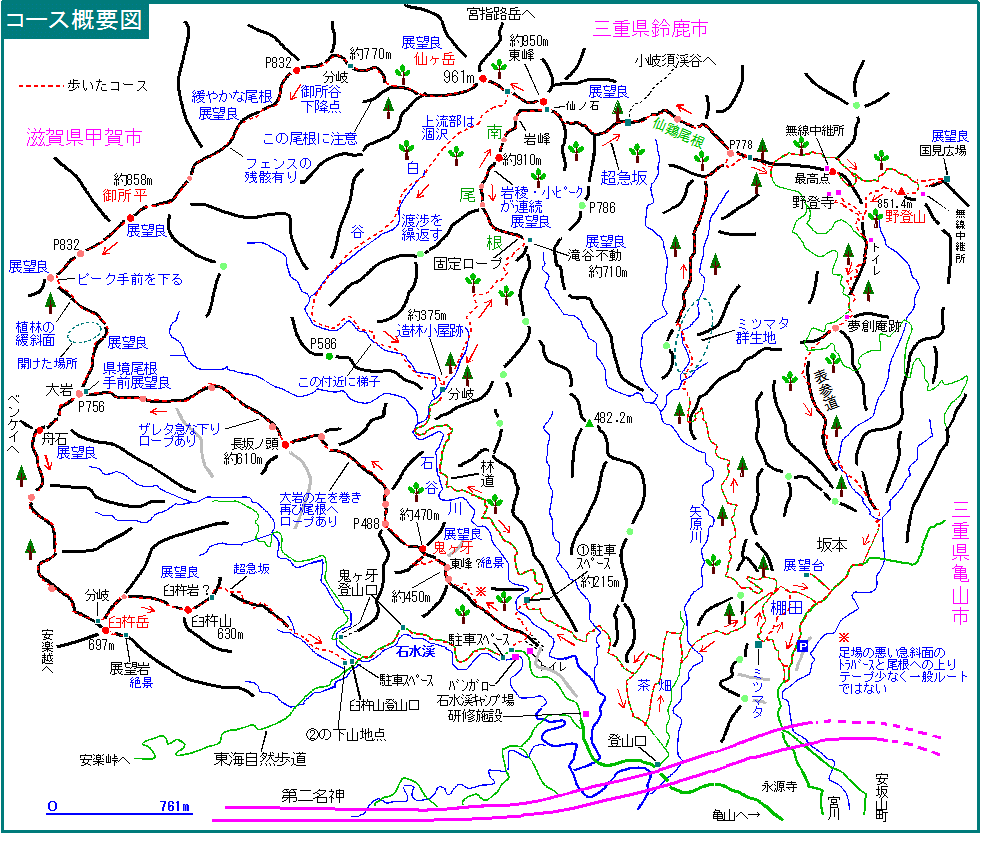 鈴鹿 仙ヶ岳宮指路岳・野登山・臼杵岳・鬼ヶ牙・御所平  三重県亀山市・鈴鹿市 滋賀県甲賀市