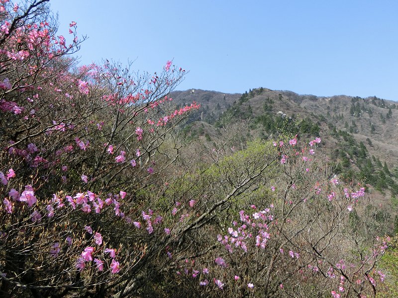| 鈴鹿でアカヤシオと言えば、これまで仙ヶ岳、御在所、国見、ハライド等、根の平峠より南の山域だった。 今回もハライドにでも出掛けようと思っていたところ、八風キャンプ場付近から釈迦ヶ岳に上がる尾根にもアカヤシオが咲いているのを知り、まだ行ったことが無い三池岳を加えたコースを周回することにした。 |