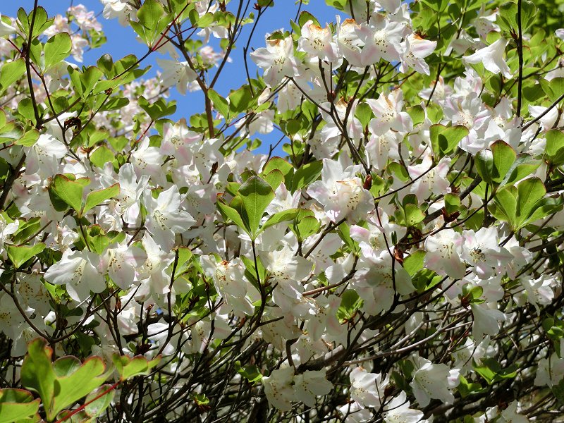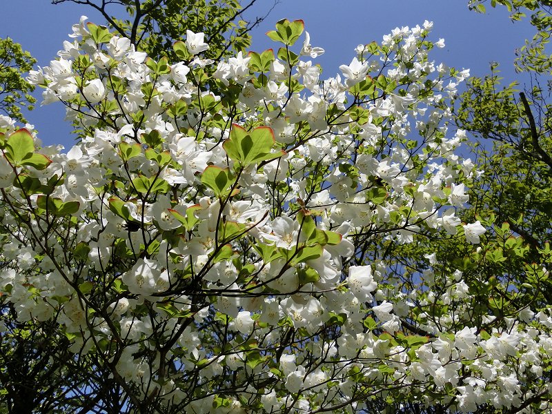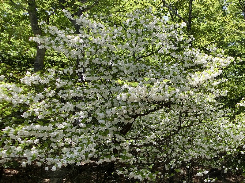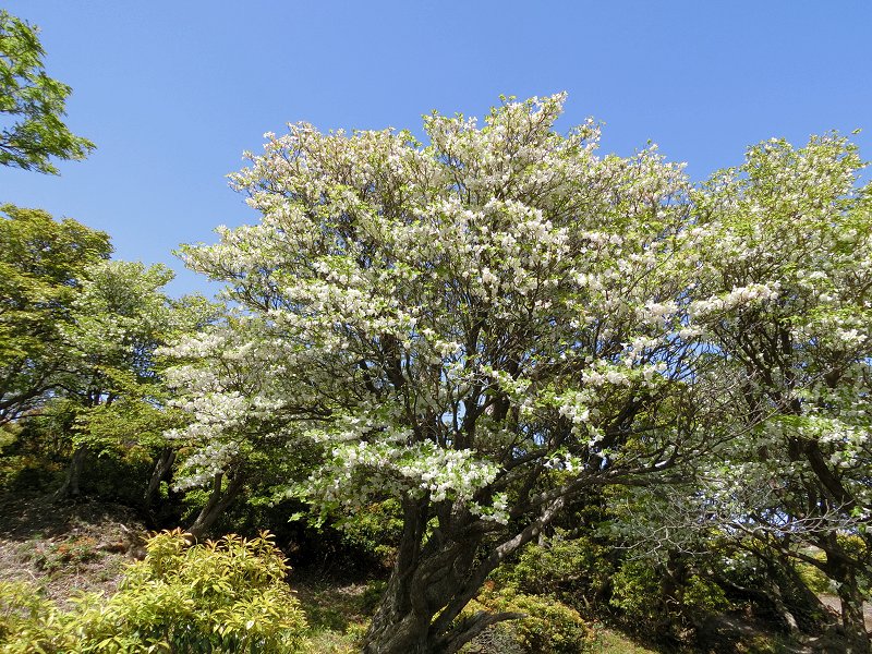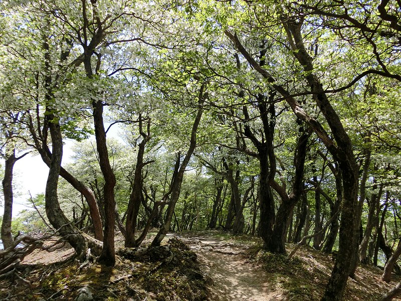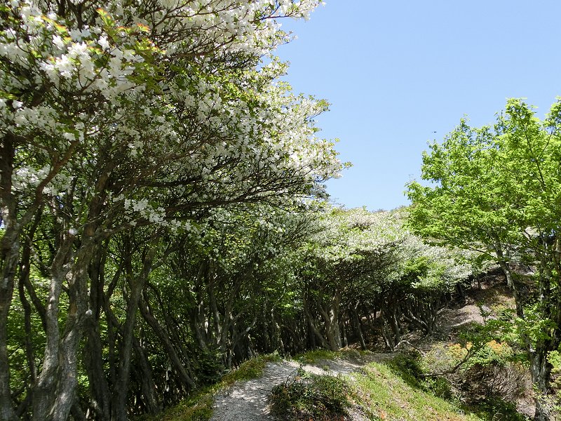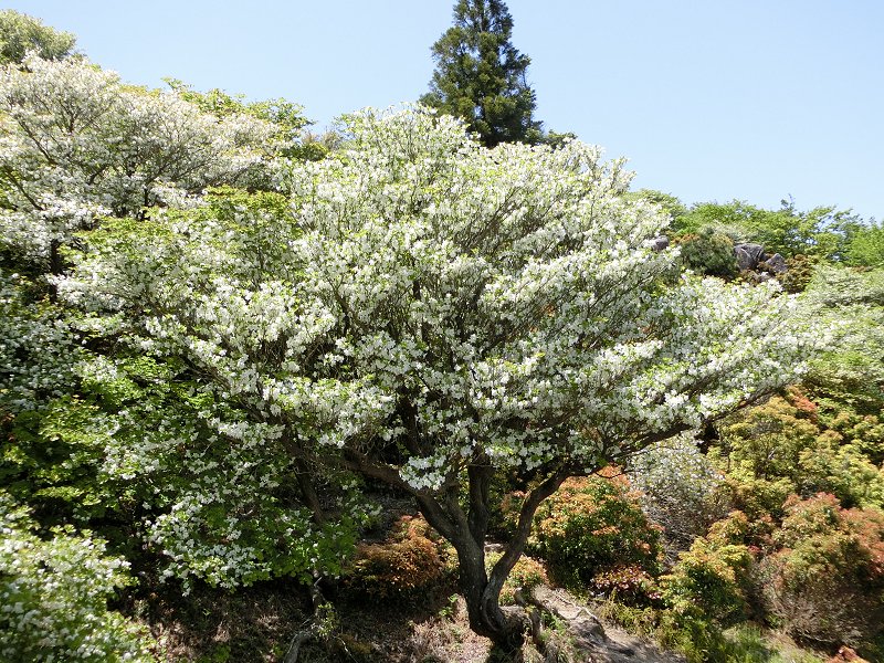 | シロヤシオといえば、大峰や台高山系に出掛けるのが殆どで、時期的には5月中旬〜6月上旬くらい。これに対し鈴鹿ではそれよりも早く、今年は釈迦ヶ岳においても、既に満開になっているとのこと。 |