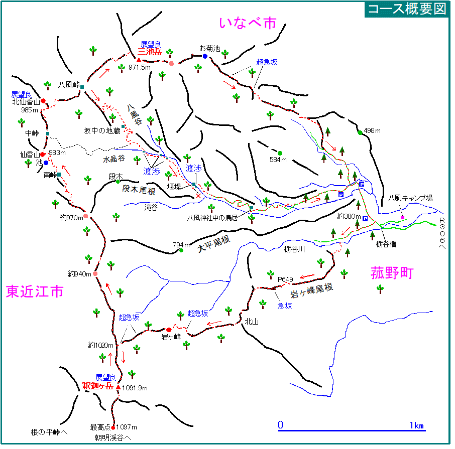 | 駐車地8:15---(7)---8:22渡渉箇所---(114)---10:16岩ヶ峰10:26---(28)---10:54縦走路---(13)---11:07釈迦ヶ岳(三角点)11:31---(6)---11:37最高点11:40---(8)---11:48釈迦ヶ岳(三角点)---(65)---12:53池---(8)---13:01南峠---(6)---12:57仙香山---(4)---13:01中峠---(9)---13:10北仙香山13:25---(15)---13:40八風峠13:44---(32)---14:16中峠分岐---(5)---14:21最初の渡渉点---(62/ロス12)---15:23駐車地 | |||
