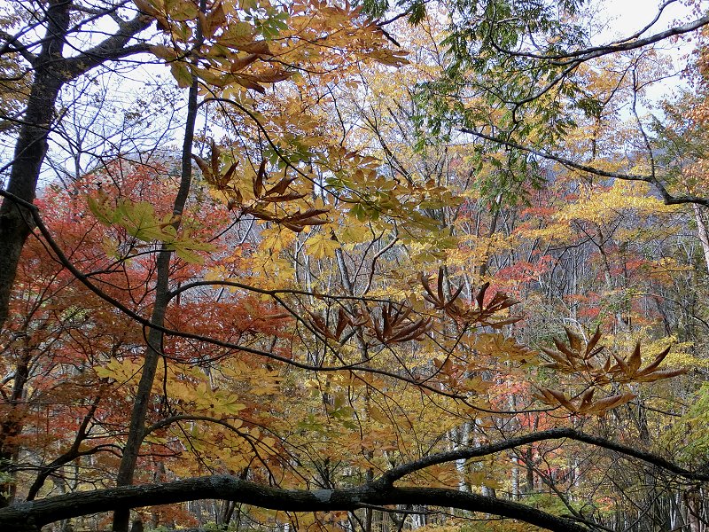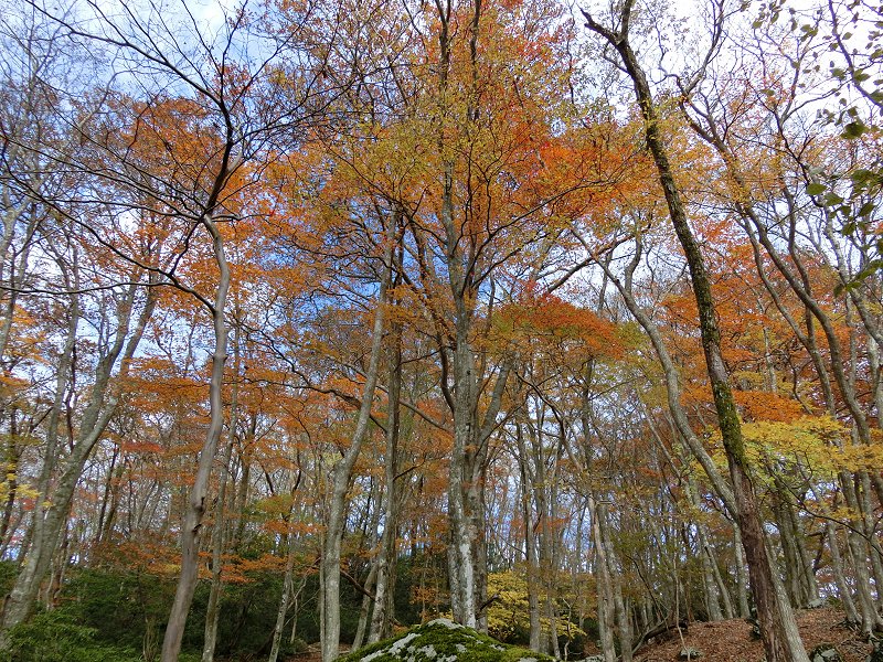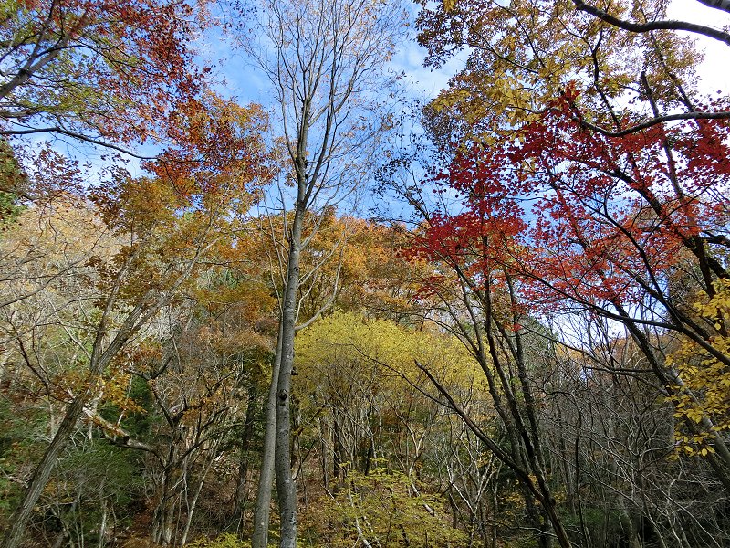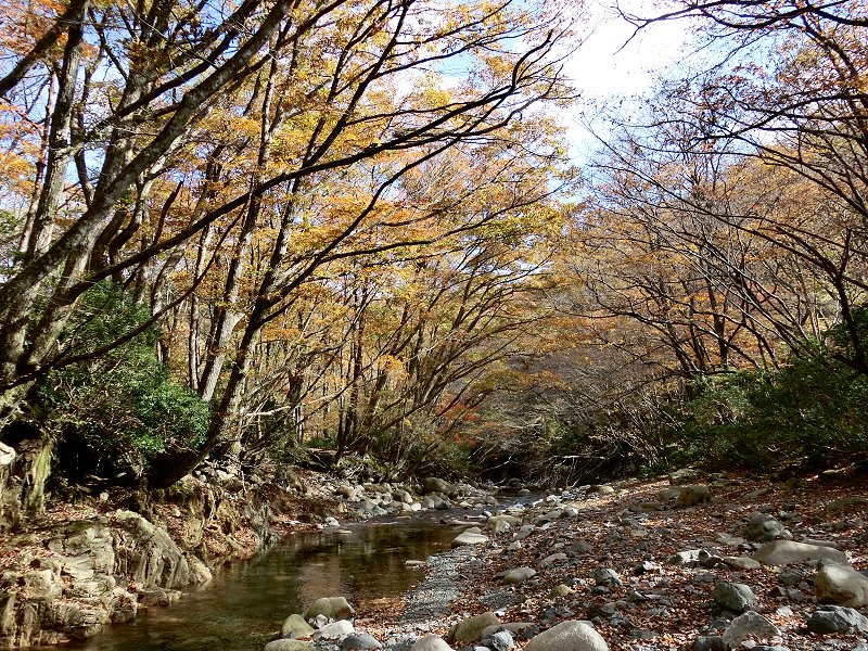 | 3年ぶりに「鈴鹿の上高地」とも呼ばれている愛知川上流(神崎川)と、森が美しい「ブナ清水」の2ヶ所を廻ることにした。 紅葉の状況 3年前とほぼ同時期で、根の平峠周辺では葉を落とした木も多かったが、愛知川沿いの木々は丁度いい具合に色づいていた。ただ赤色が3年前に比べ若干少ないように感じた。 ブナ清水周辺では赤く色づいた木もあり、丁度見頃のタイミングだった。 |